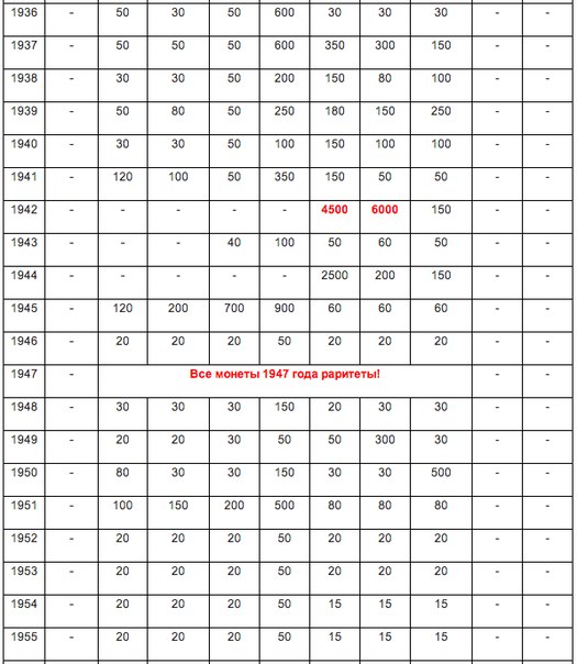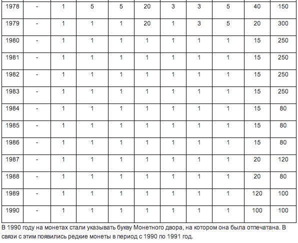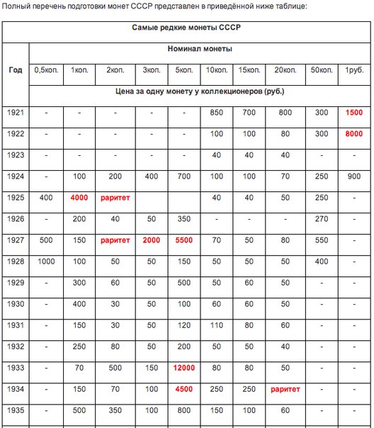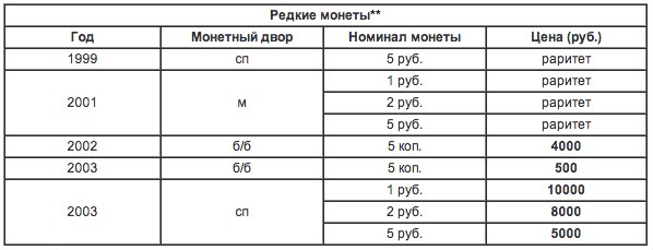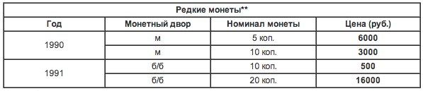 коллекционеры отдадут не малую сумму. В приведенной ниже таблице